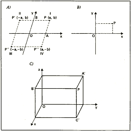 loro e, nello spazio, tre rette due a due ortogonali (x, y, z) e aventi
