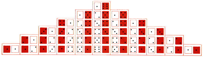 "I fatti stavano così: i compagni di gioco di De Méré gettavano un solo dado per quattro volte. Uno dei giocatori scommetteva che il sei sarebbe uscito per lo meno una volta su quattro, mentre l'avversario scommetteva l'inverso". L'uomo citato da Pascal aveva scoperto che lo scommettitore del sei era favorito dalla sorte. De Méré aveva preso nota di tutte le giocate e scoprì empiricamente che, in effetti, le probabilità di uscita del sei su quattro giocate sono 661 contro 625. Stancatisi di questo gioco, gli amici del signor de Méré decisero di variarlo, gettando due dadi per ventiquattro volte e scommettendo sul doppio sei (il dodici). Ancora una volta, De Méré fu stupito da un'altra scoperta: le probabiltà risultavano invertite; era favorito, infatti, chi scommetteva contro l'uscita del dodici e ancora una volta - a conti fatti - risultò che chi giocava contro aveva in media 51 possibilità su 100 di vincere. |