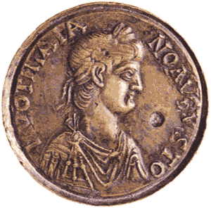 Un fatto singolare si riscontra osservando i sistemi di calcolo dei Romani: quando si trattò di passare dai numeri interi alle frazioni, i Latini abbandonarono la base dieci. La loro ristretta mentalità speculativa li aveva portati a tralasciare ogni considerazione teorica sulla nuova categoria di numeri - quelli frazionari - e così si limitarono a considerare le frazioni come parti delle unità di misura in uso, le quali venivano divise in 12, 144, 288, 576. Lo stesso fatto si ripeteva per le suddivisioni monetarie (a destra è raffigurata un moneta coniata in bronzo raffigurante l'imperatore Teodosio). La necessità di considerare gli altri numeri frazionari si fece sentire soltanto dopo il Mille d.C.. |
