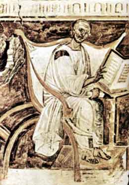 Sant'Agostino, nemico dei matematici, in un affresco del sesto secolo. |
